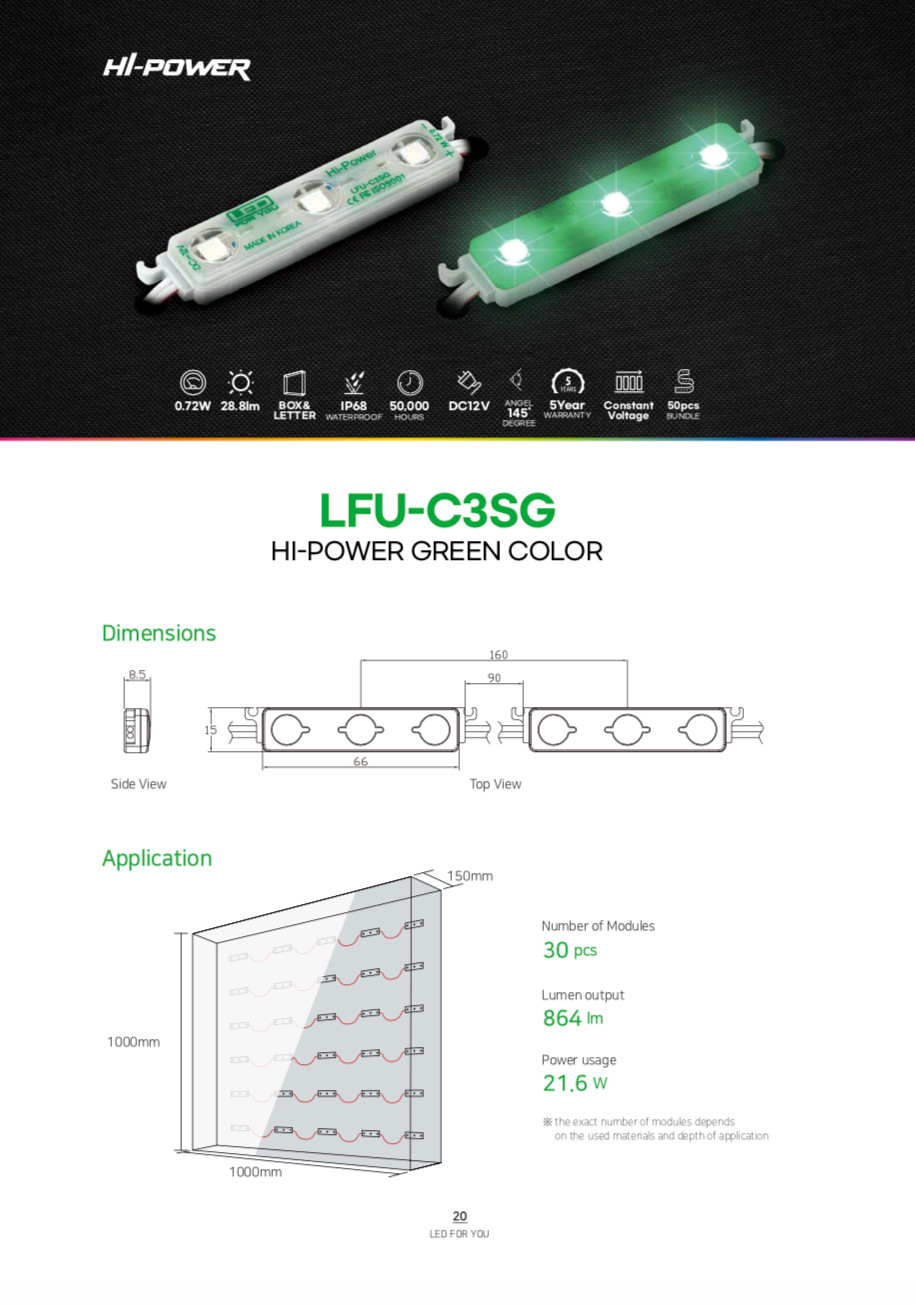 | Mã sản phẩm | LFU-C3SG HI-POWER GREEN COLOR |