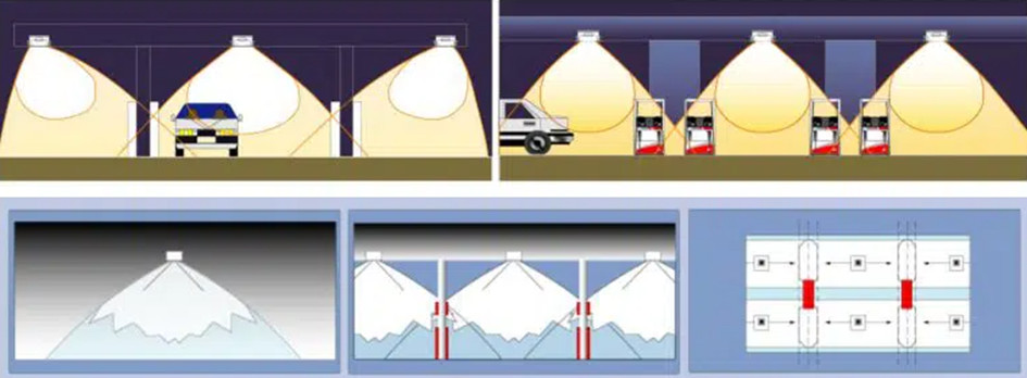 Các bộ đèn LED cụ thể có góc chùm sáng, quang thông và CRI cụ thể cũng có thể phù hợp hơn cho các ứng dụng trạm xăng dầu. Ngoài ra, khoảng cách giữa các bộ đèn LED phải đảm bảo rằng các khu vực giữa các máy bơm, khu vực xung quanh và các khu vực quan trọng khác của trạm có mức độ chiếu sáng đồng đều, độ chói tối thiểu.