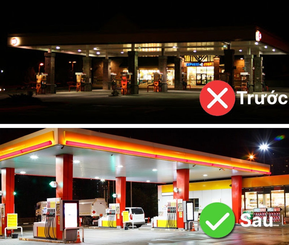 Chiếu sáng bảng hiệu cây xăng giúp nhận diện thương hiệu