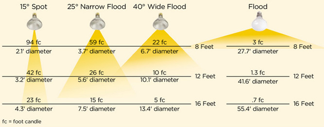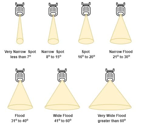 Góc chiếu rộng trên 60° còn thích hợp cho chiếu sáng trong không gian rộng. Dù đèn không thể cho cường độ ánh sáng cao nhưng ánh sáng sẽ trải đều khắp phòng. Hơn nữa, nếu chọn góc chiếu rộng và chọn bộ đèn với quang thông cao hơn thì chúng ta không phải lắp quá nhiều đèn trong cùng một căn phòng mà độ sáng cũng đồng đều hơn.