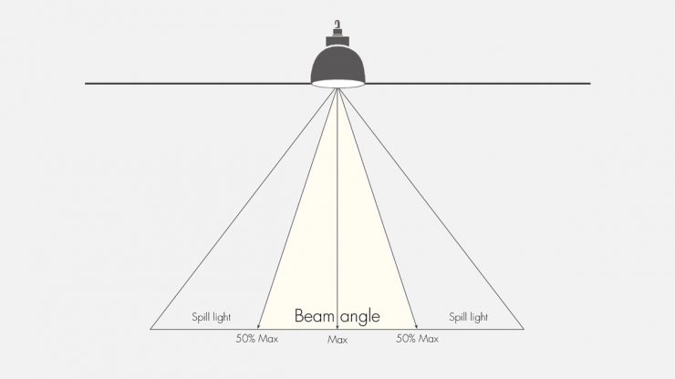 Góc chiếu thể hiện sự phân bố ánh sáng từ bộ đèn. Một bóng đèn bình thường có góc chiếu là 360°, có nghĩa là ánh sáng phát ra phân số xung quang toàn bộ đèn, cường độ sáng không cao. Các bộ đèn có góc chiếu nhỏ hơn thì cường độ sáng cao hơn vì ánh sáng tập trung hơn.