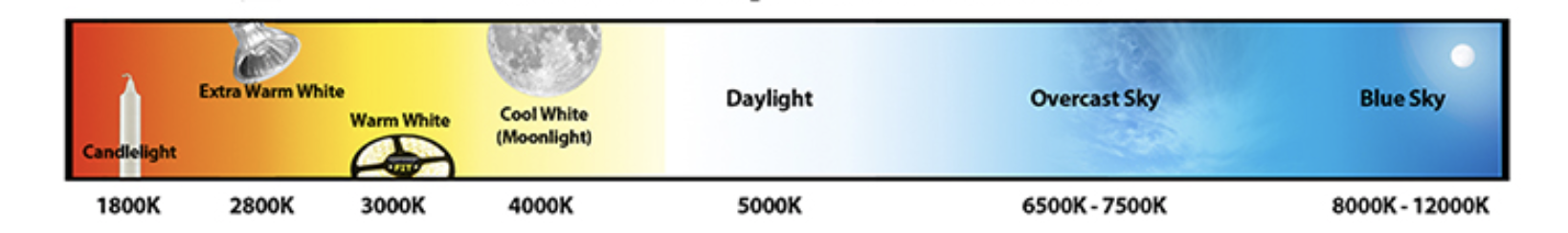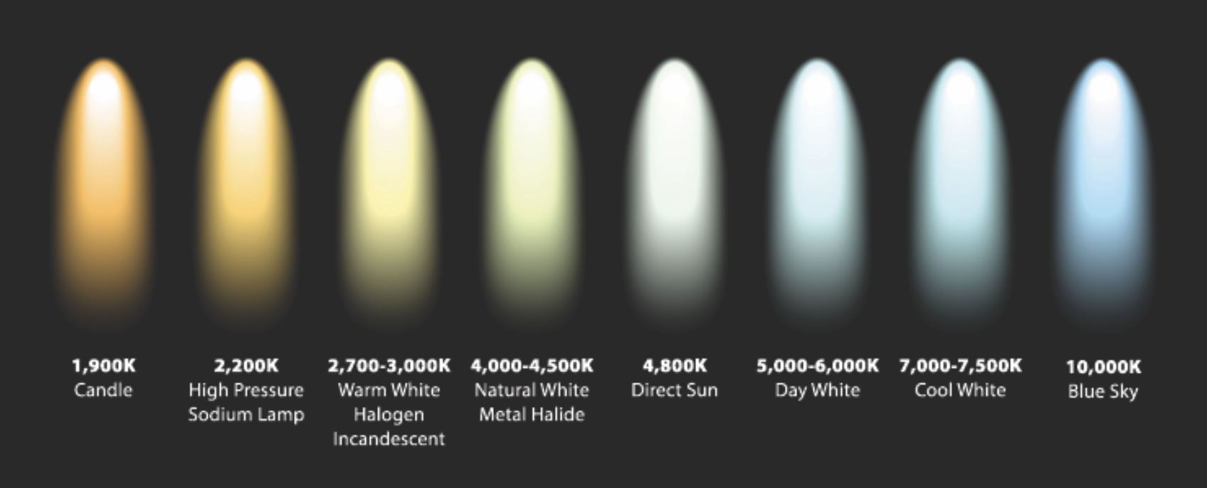 Nhiệt độ màu, đơn vị Kelvin (K) chỉ màu sắc mà ánh sáng phát ra. Nhiệt độ màu khác nhau phù hợp với từng khu vực khác nhau, mang lại từng nhiệu ứng khác nhau cho không gian, cảm xác và tâm trạng của người dùng.