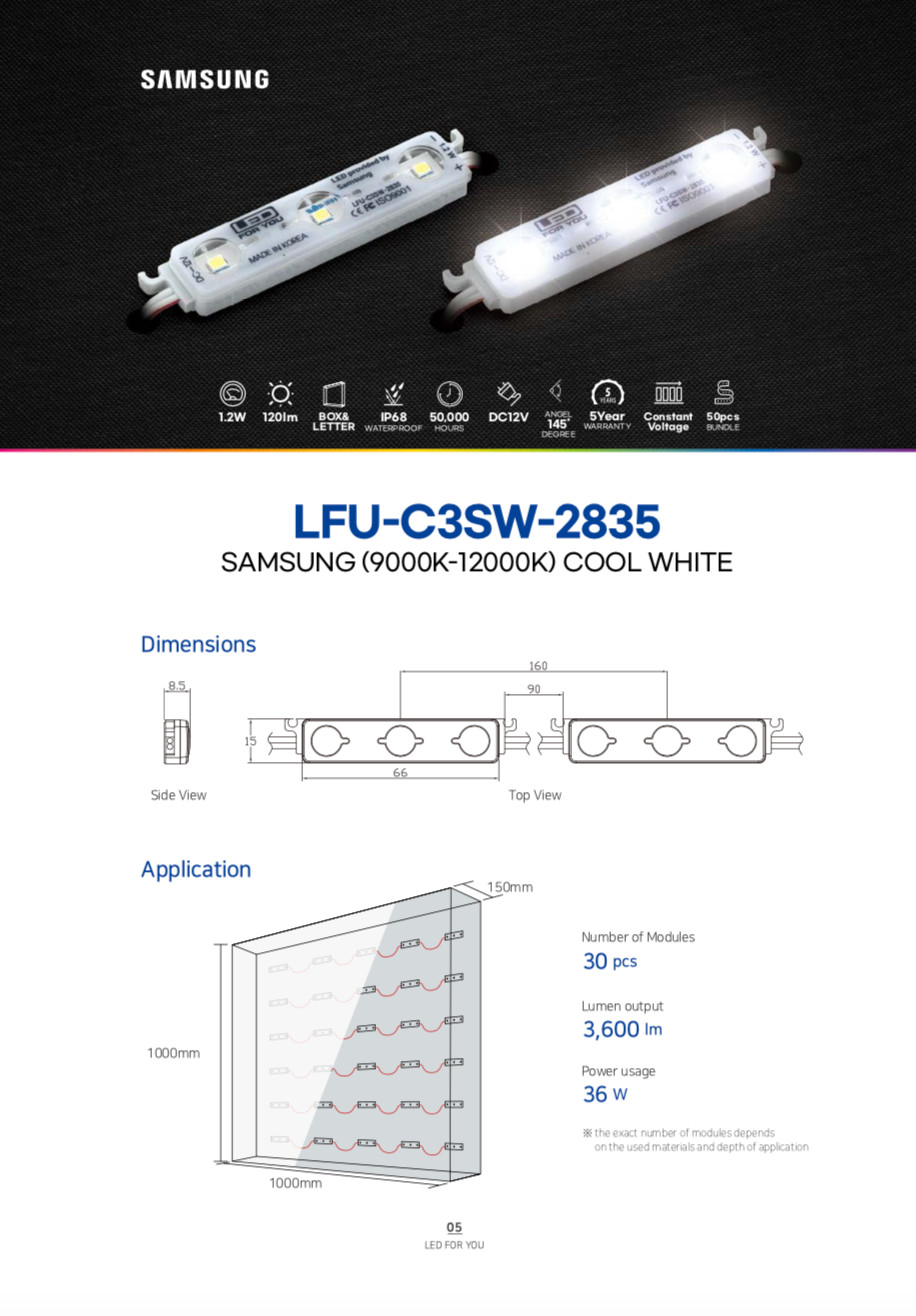 | Mã sản phẩm | LFU-C3SW-2835/ COOL WHITE |