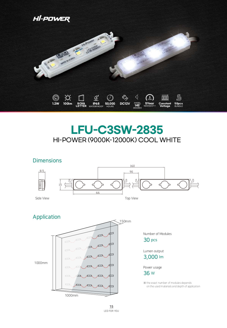 | Mã sản phẩm | LFU-C3SW-2835/ COOL WHITE |