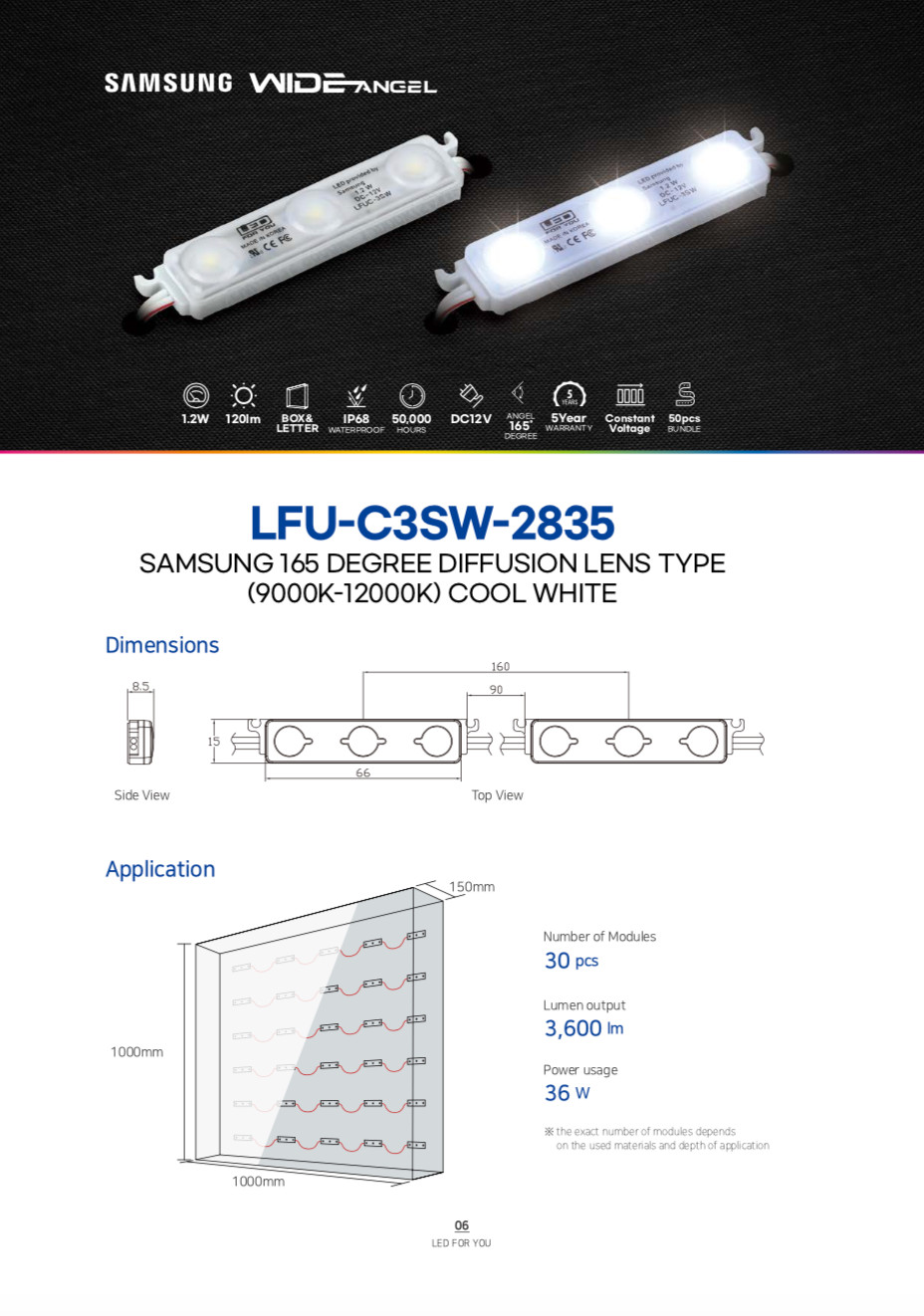 | Mã sản phẩm | LFU-C3SW-2835 / LENS/ COOL WHITE |