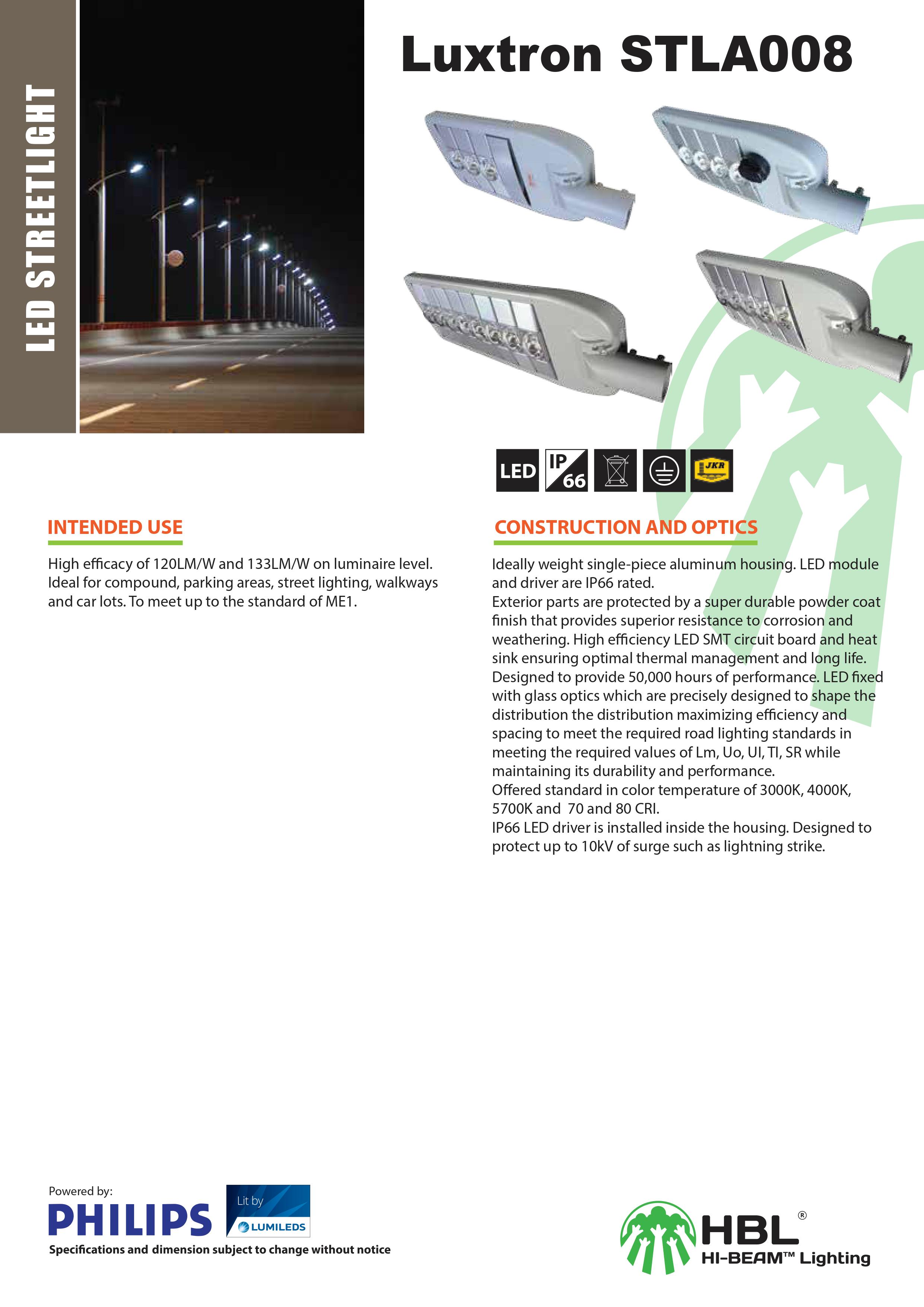 Bộ đèn LED hiệu suất cao 120Lm/W đến 133Lm/W. Lý tưởng cho khu phức hợp, khu vực đỗ xe, đèn đường hoặc lối đi bộ. Thiết kế đáp ứng tiêu chuẩn nhiều loại đường.