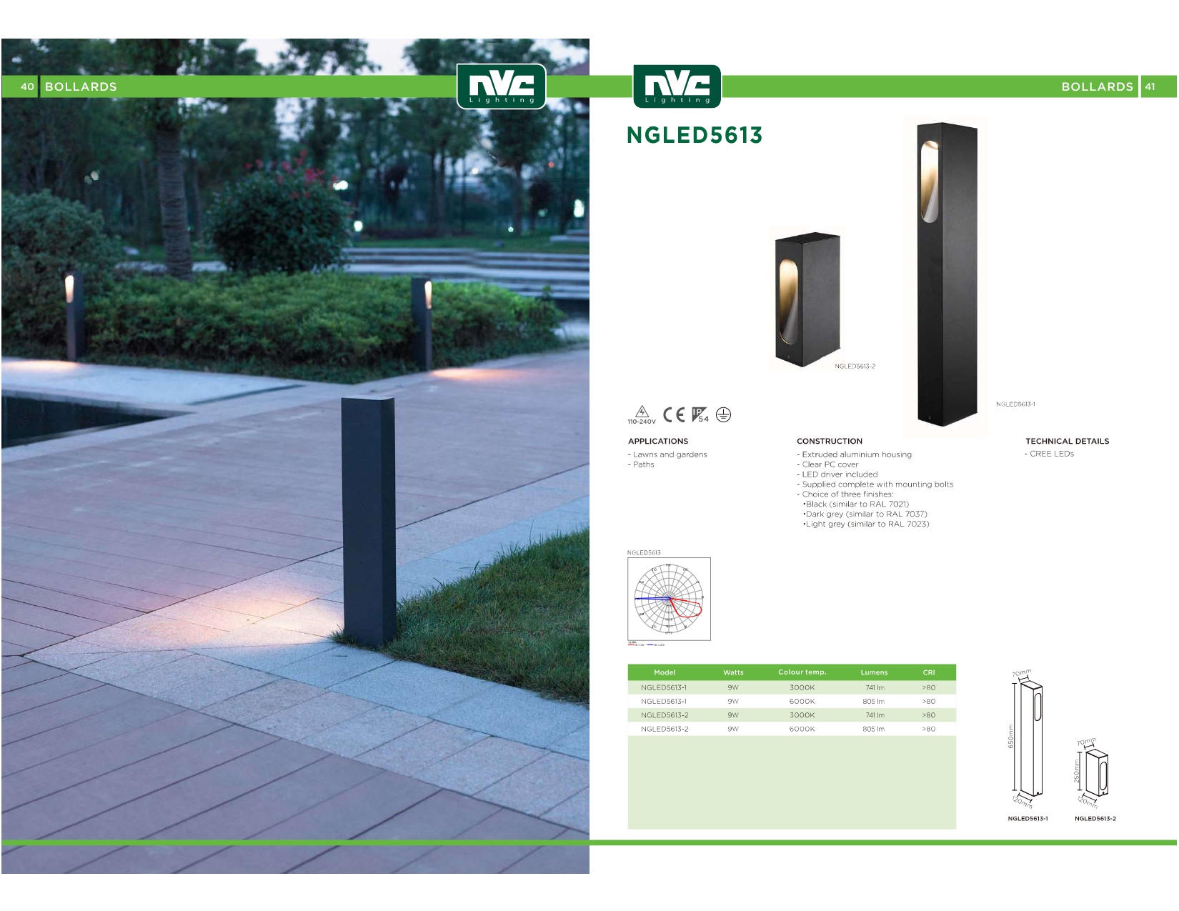 • Có 3 lựa chọn: thân đèn màu đen (RAL 7021), màu xám đậm (RAL 7037) và màu xám sáng (RAL 7023)