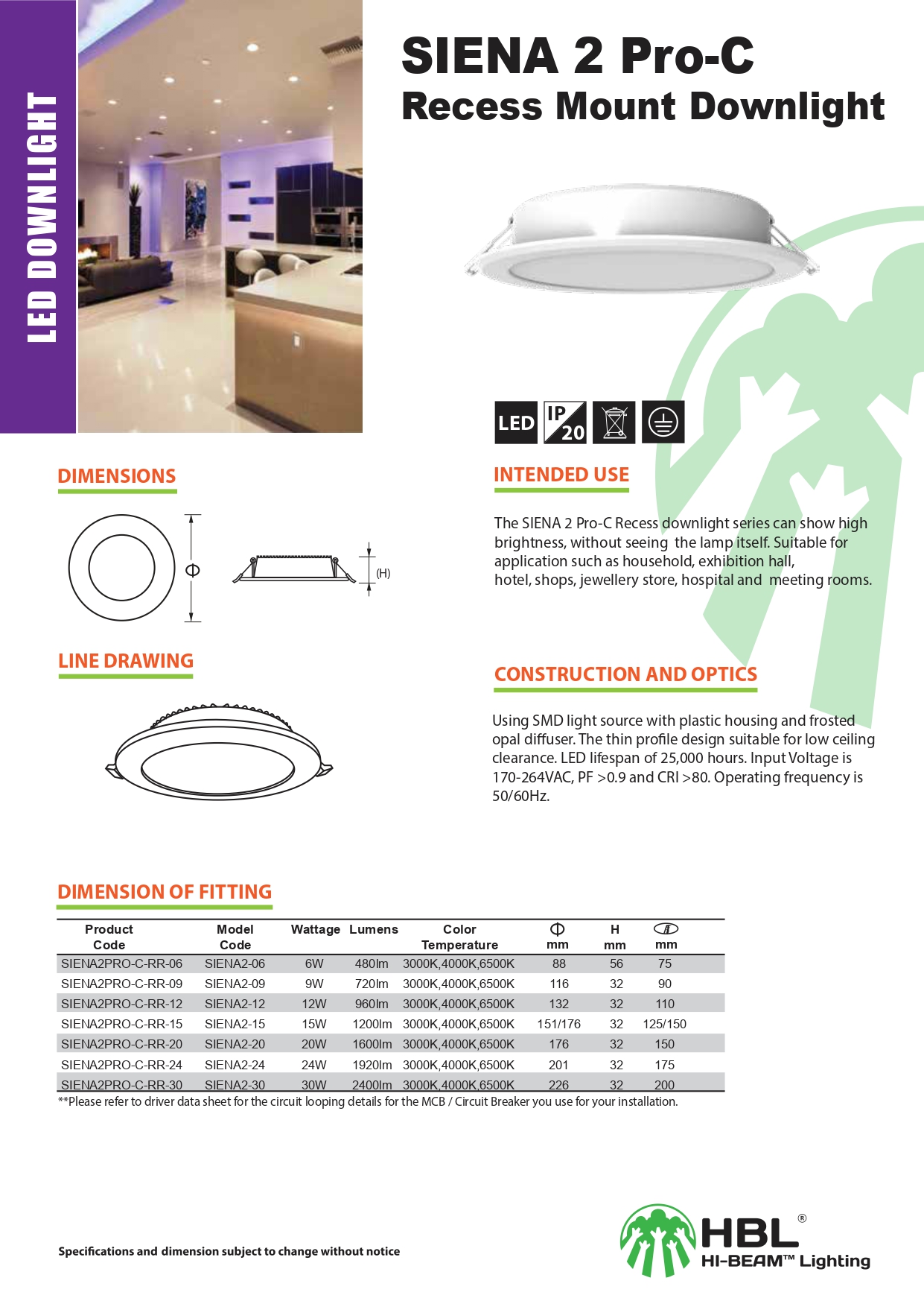 Đèn LED downlight SIENA2 PRO-C cho ánh sáng tốt, không đổ bóng. Thích hợp cho nhiều ứng dụng khác nhau như nhà ở, trung tâm triển lãm, khách sạn, cửa hàng, cửa hàng trang sức, bệnh viện, phòng họp.
