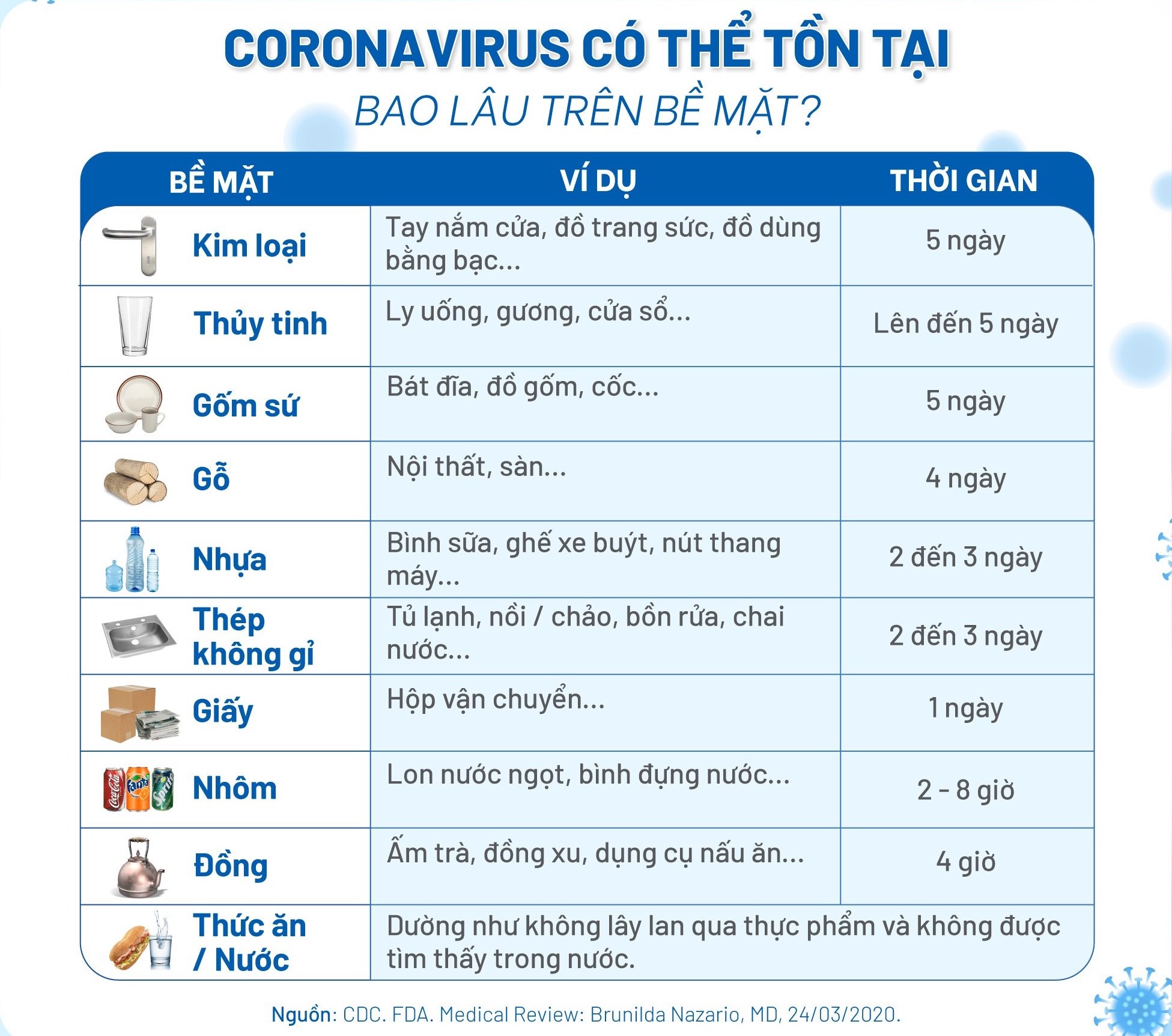 Tùy theo môi trường, nhiệt độ, độ ẩm mà virus Corona có khả năng sống khác nhau. Các nghiên cứu cho thấy ở 4°C, virus Corona có khả năng sống khoảng 1 tháng. Từ 20-25°C virus sẽ yếu dần, sống được khoảng 5-7 ngày. Từ 33°C trở lên, virus Corona suy yếu nhanh.
