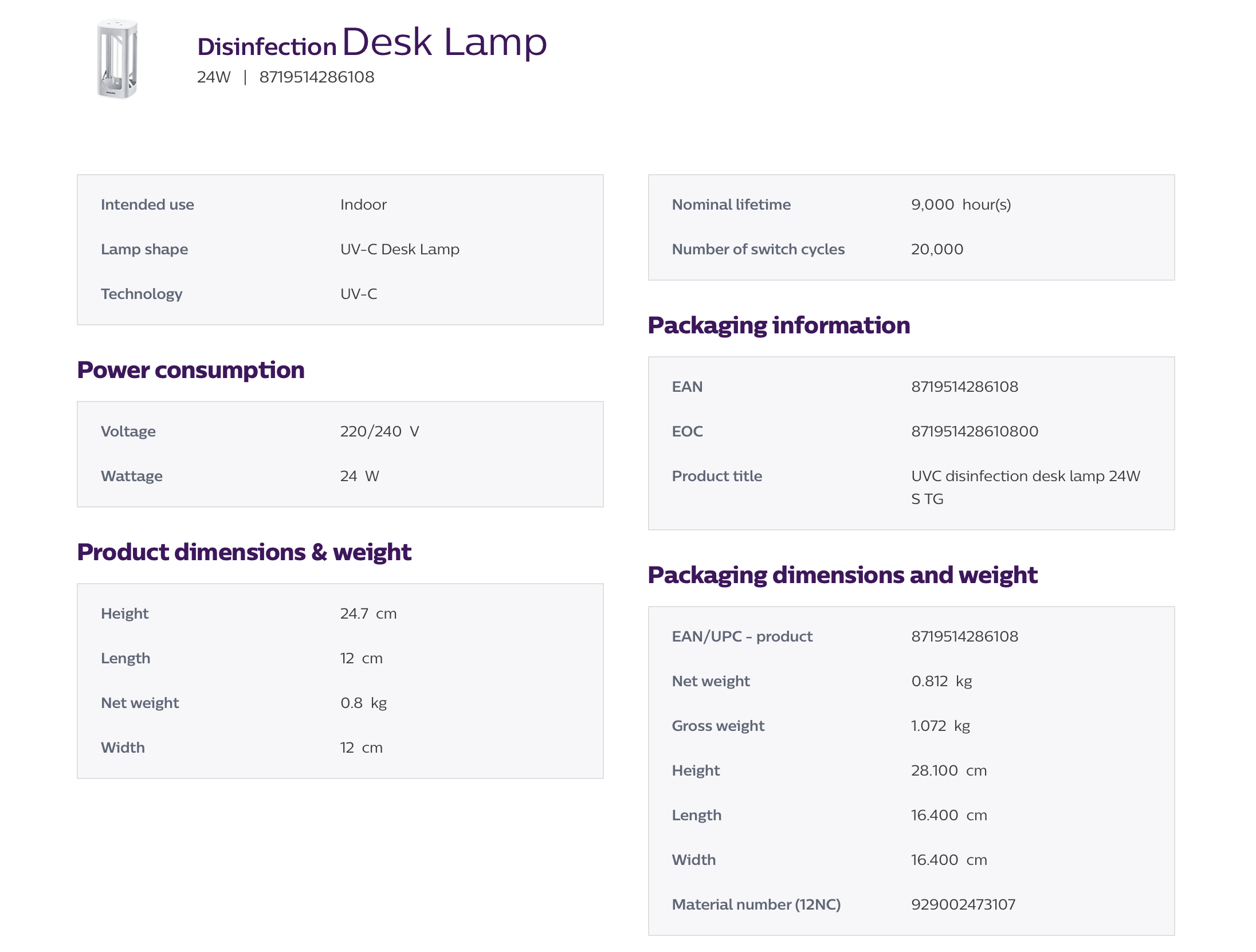 Đèn bàn khử trùng Philips UV-C có thể diệt vi-rút, vi khuẩn, nấm mốc và bào tử một cách hiệu quả chỉ trong vài phút. Đèn có tích hợp các cảm biến và bộ hẹn giờ bổ sung thêm một lớp bảo vệ cho bạn và gia đình.